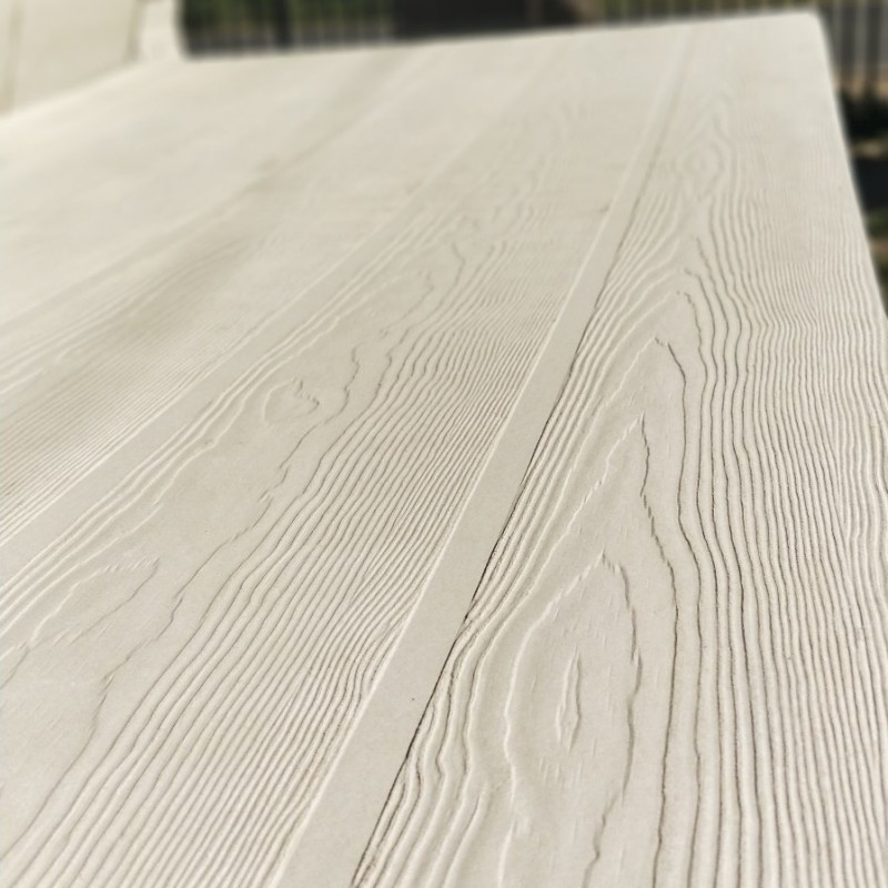 Placa de revestimiento con apariencia de madera listoneada, para uso en muros interiores y exteriores, cielos rasos, aleros y fachadas decorativas.