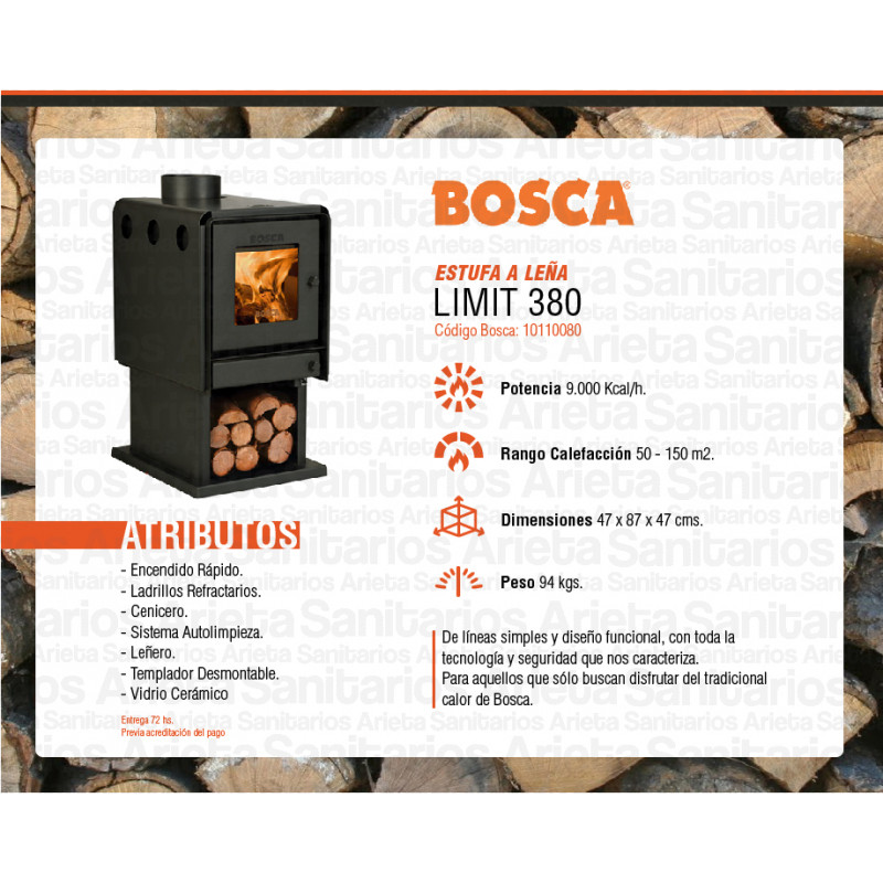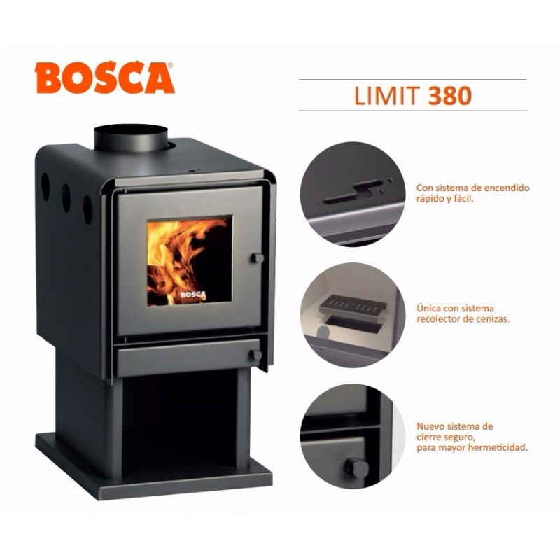 Estufa a leña limit 380 9888kcal/hr 180 m2 bosca